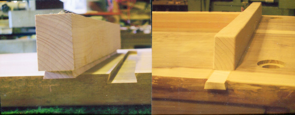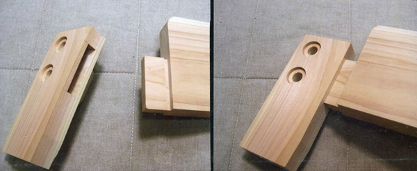 ホゾ穴(凹)よりホゾ(凸)が少し大きくなっていて組むと抜けない仕組み。