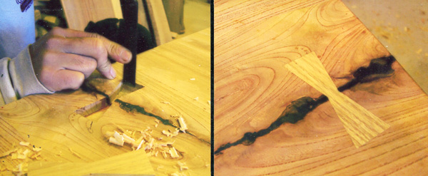 釘やのりはいっさい使わず、木の伸び縮みの動きを妨げずに木の反りを止める。